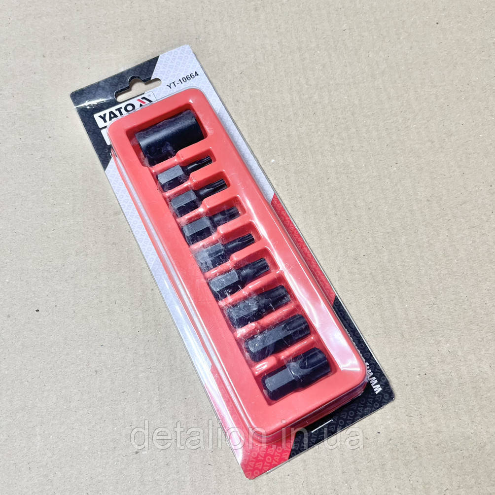 Набір насадок викруткових ударних YATO: TORX T30-T70 із 6-г. адаптером 1/2". 9 Ед. Щоб замовити Вам досить буде оформити електронну заявку на цій сторінці або зв'язатися з нашим менеджером, зателефонувати телефоном, зазначеним у контактах. Ми із задоволенням приділяємо Вам додаткову консультацію наших фахівців і уточивши окремі деталі Вашого замовлення.У разі, коли ремонт Вашого автомобіля потребує заміни тієї запчастини, яка з певних причин відсутня на складі або в нашому Інтернет-магазине, то Ви можете залишити заявку на купівлю, а ми так само робимо все, що від нас залежить, щоб ви змогли отримати потрібну автозапчастину. Доставка в будь-яку точку України.